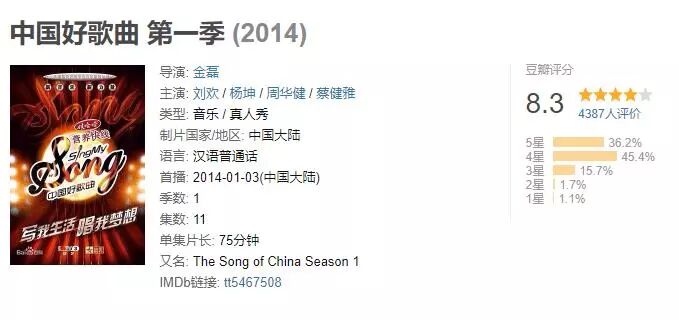 2014年1月,《中国好歌曲》第一季在央视三套播出。
