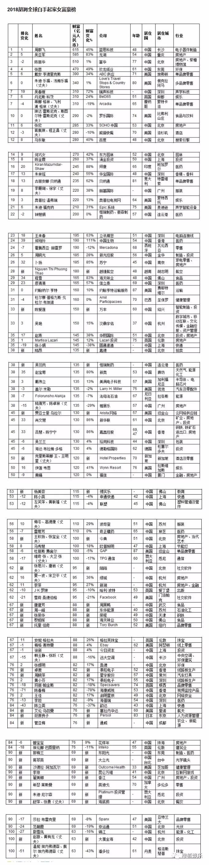3.2018白手起家女富豪榜发布:一半来自中国 赵薇首次上榜