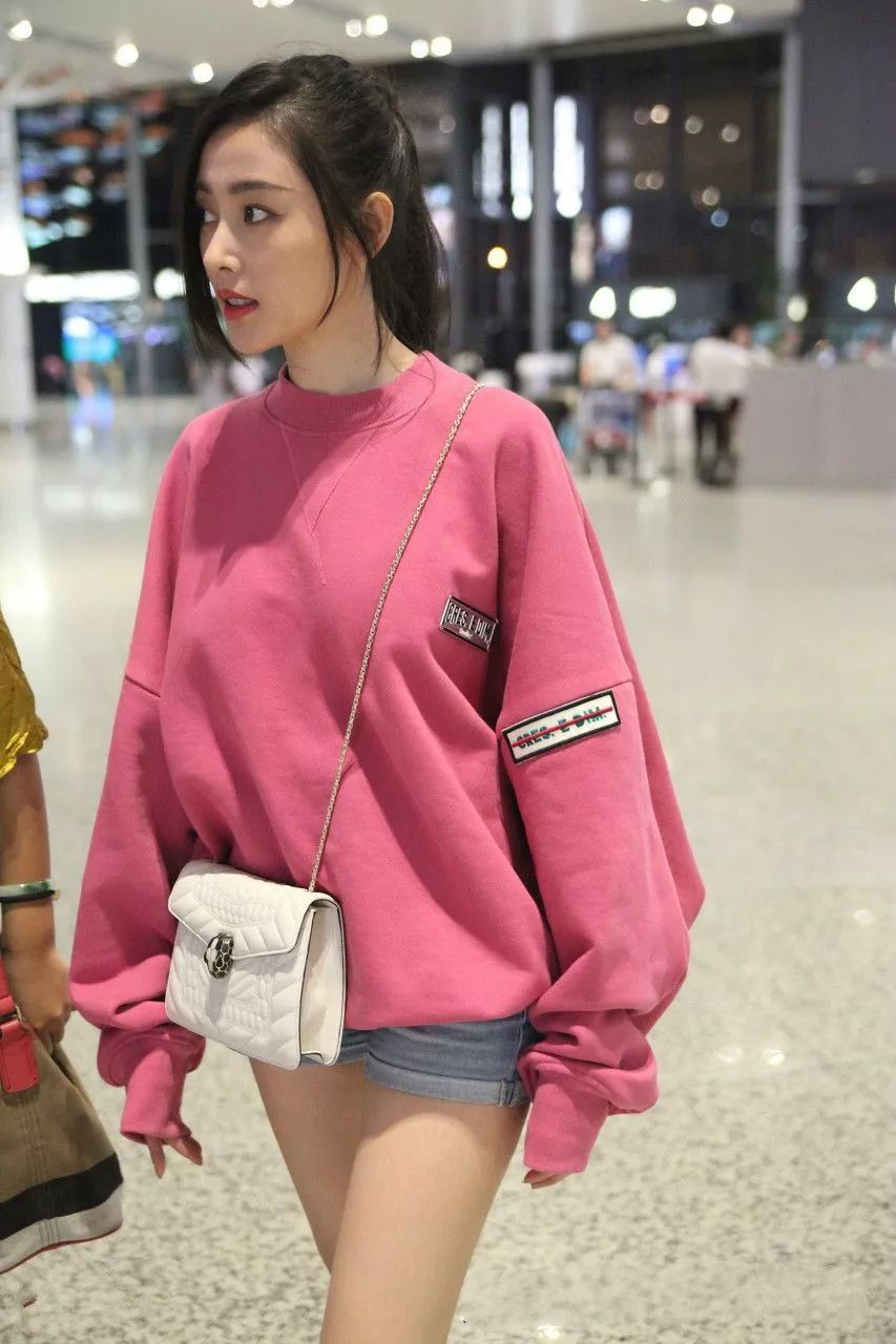 玫粉色的宽松卫衣,让张天爱充满可爱感,这条超短蓝色热裤,让自己美出新高度,格外入境,成为人们心中的女神。