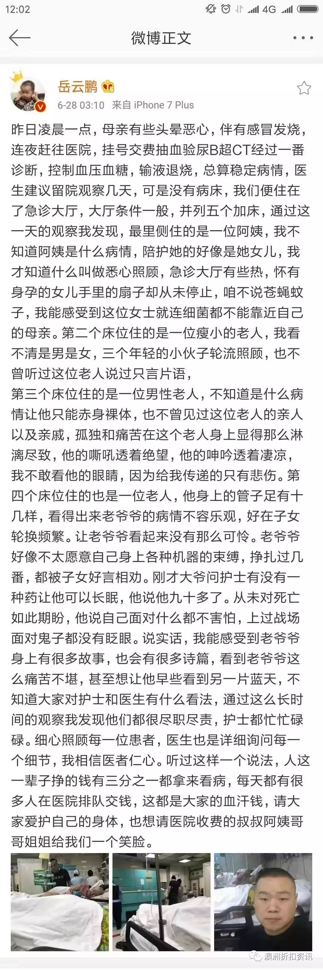 6月28日岳云鹏晒出了三张医院里的照片,最后一张是岳云鹏的自拍照,最近的岳云鹏好像是有些憔悴了,可能是妈妈生病住院了才令岳云鹏有些担忧才如此憔悴的吧。不过岳云鹏深夜发了长文,岳云鹏表示昨日凌晨一点,岳妈妈有些头晕恶心,伴有感冒发烧连夜赶往医院,不过现在岳妈妈的病情已经稳定了。