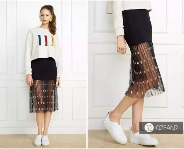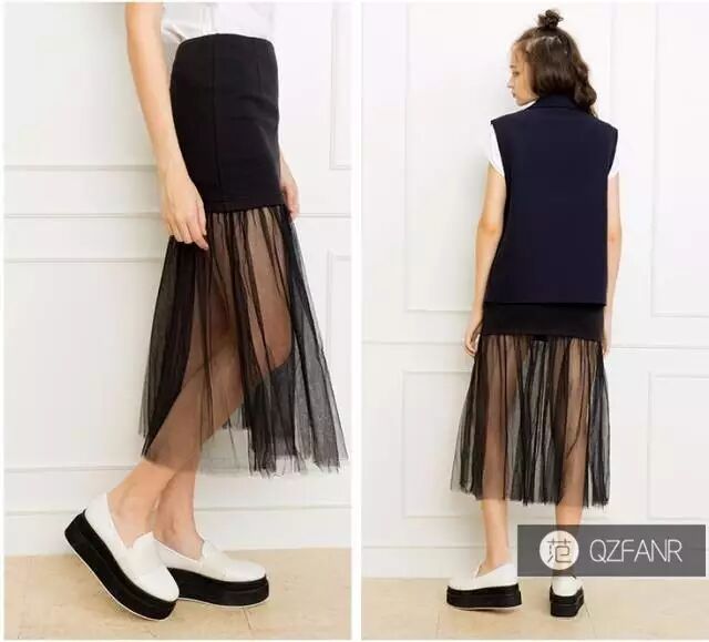 地素这款微透网纱,有一种若隐若现的神秘美感;高腰设计,将宝宝的比例发挥的更加完美,视觉显瘦。适合搭配长外套、长马甲、长毛衣。