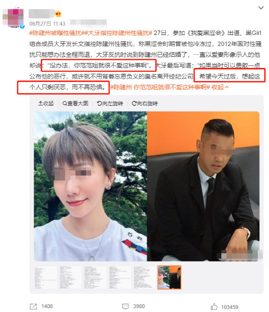 “当年,我们几个姐妹喝酒都很爱亲亲(但只限姐妹)。” “因为我们把陈建州也当姐妹,所以他说要亲我们,并不觉得是骚扰。” “但没想到,现在不只有我们姐妹而已,他对别的小妹妹也这样,强迫亲他…”