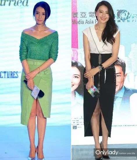钟小姐这种斜开叉过膝裙遮肉效果也很棒,且雌性荷尔蒙噌噌上涨。