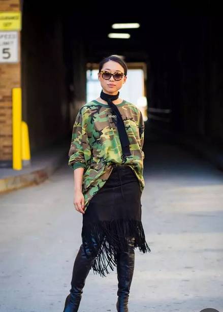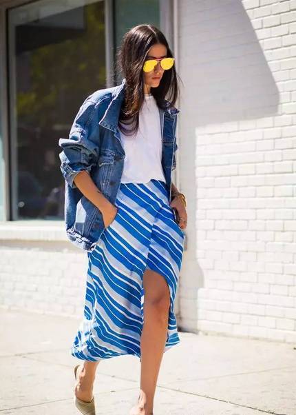 开叉半裙的美就在于那一种不受任何形式的束缚,而规则的长裙加上一根皮筋、一个衣结,就能轻松打造出来的不规则感,你也可以尝试一下。