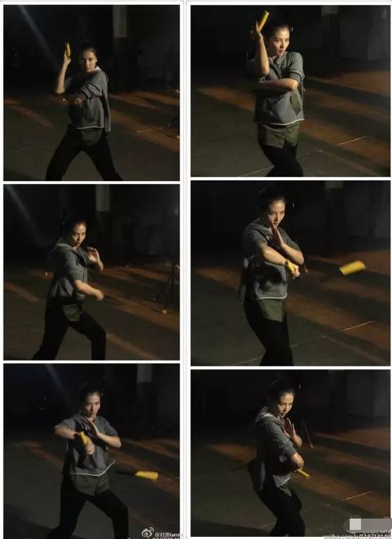于是,不演戏的时候,就抓紧时间健身,出没健身房、举哑铃、练双节棍。所以觉得自己喝水都会胖的小伙伴,别再找借口胖了哦。