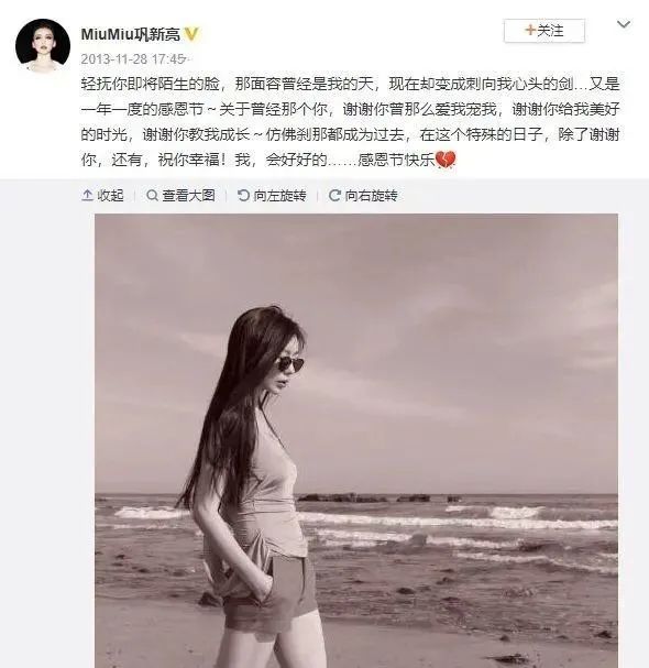 分手后巩新亮说:“轻抚你即将陌生的脸,那面容曾是我的天,现在却变成刺向我心头的剑......”