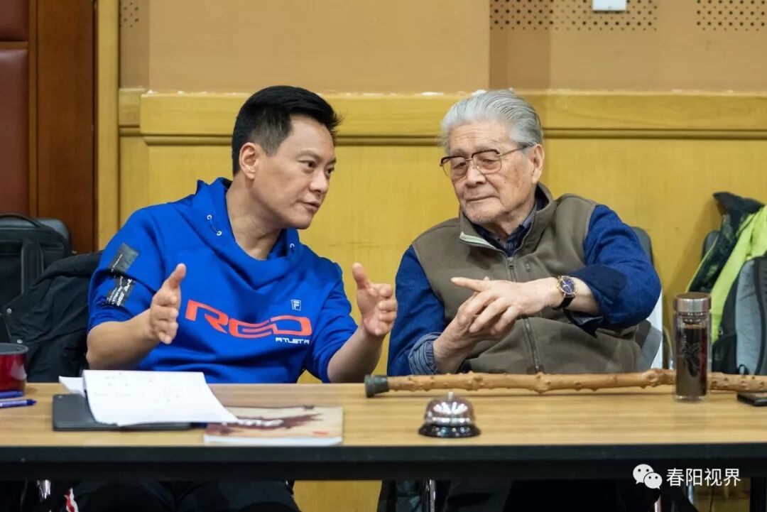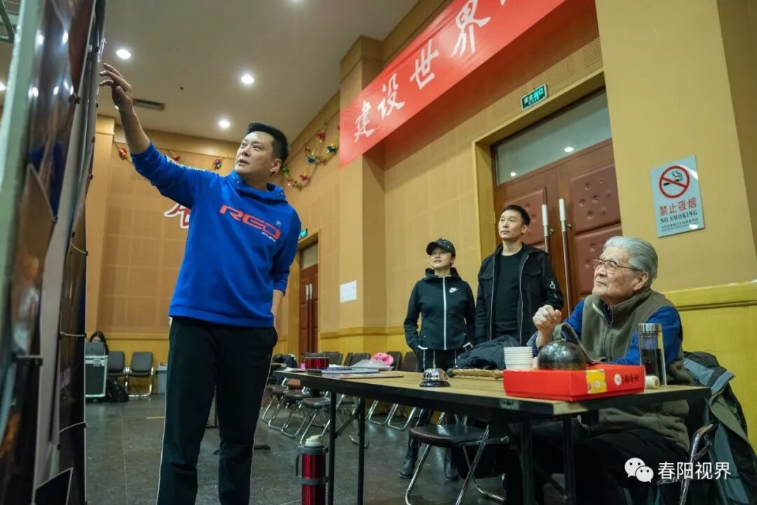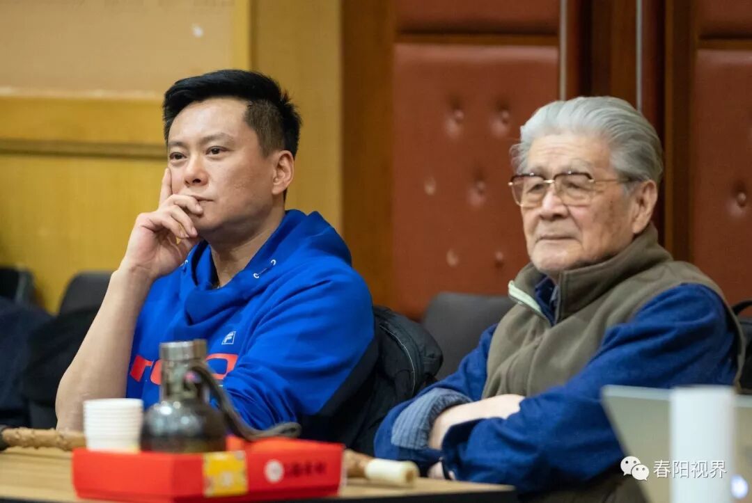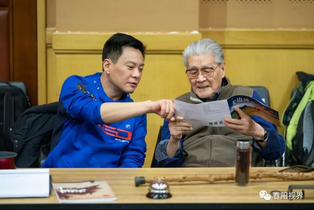 2019年10月29日,《天边外》剧组迎来了92岁蓝天野先生探班。蓝先生在排练厅观看了全剧的连排,并与全剧组进行了演后谈。蓝先生说:我对斑哥导演的作品很期待,之前看过他的第一部作品《她弥留之际》,我很感慨,斑哥不像是第一次由演员转作导演的,他的作品很精致,剧本、舞美和导演手法很老道,一看就是下了很多功夫。