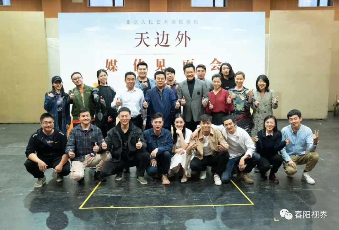 2019年10月11日,北京人艺原创新作《天边外》举行新闻发布会。导演王斑透露,排练之前,他已经进行了十个月的案头工作。而剧中的三位主角将全部由刚入院不久的年轻演员担纲,最小的才21岁。