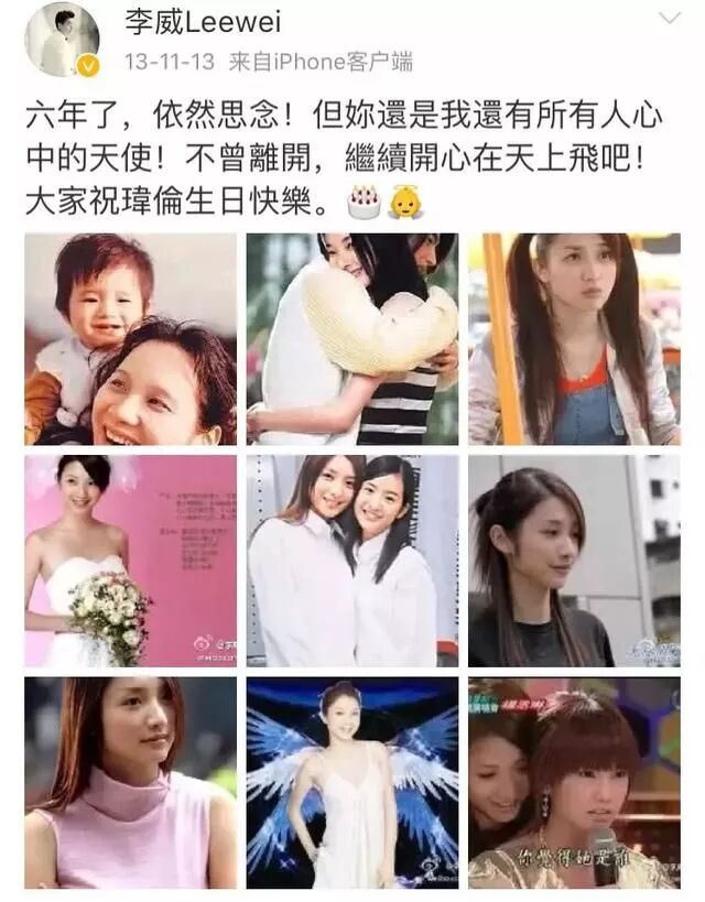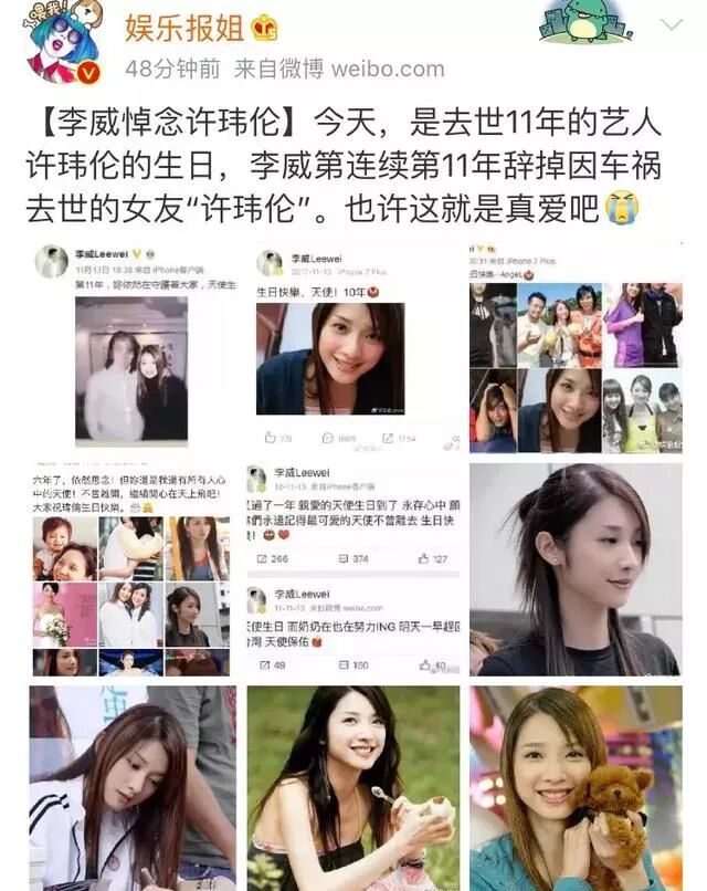但是,李威却把这一天记得清清楚楚,他也准时在自己的社交网站上发文悼念。他把许玮伦称为天使,还说她依然在守护着大家。这已经是李威连续11年为她送上祝福了!