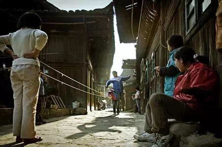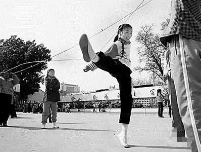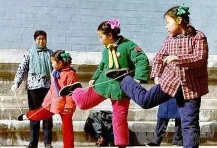 女孩子抓石子儿,跳皮筋,玩到天黑。