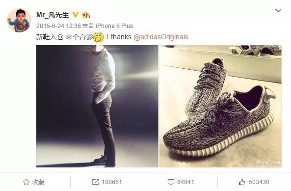 问题来了,作为一个潮BOY,身上怎么可以少了Yeezy系列呢?其实吴亦凡也是yeezy粉,自从代言了Adidas之后,他身上yeezy的出镜率自然也就不会少,鞋子、T恤、外套全都要收入囊中。