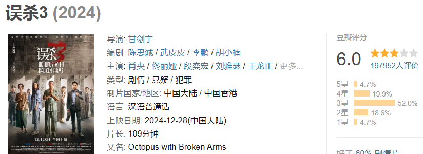 回顾陈思诚的爆款履历,从“唐探宇宙”、到《误杀》系列,再到现象级的《消失的她》,无一不是靠社会热点+类型片爽感撬动票房。