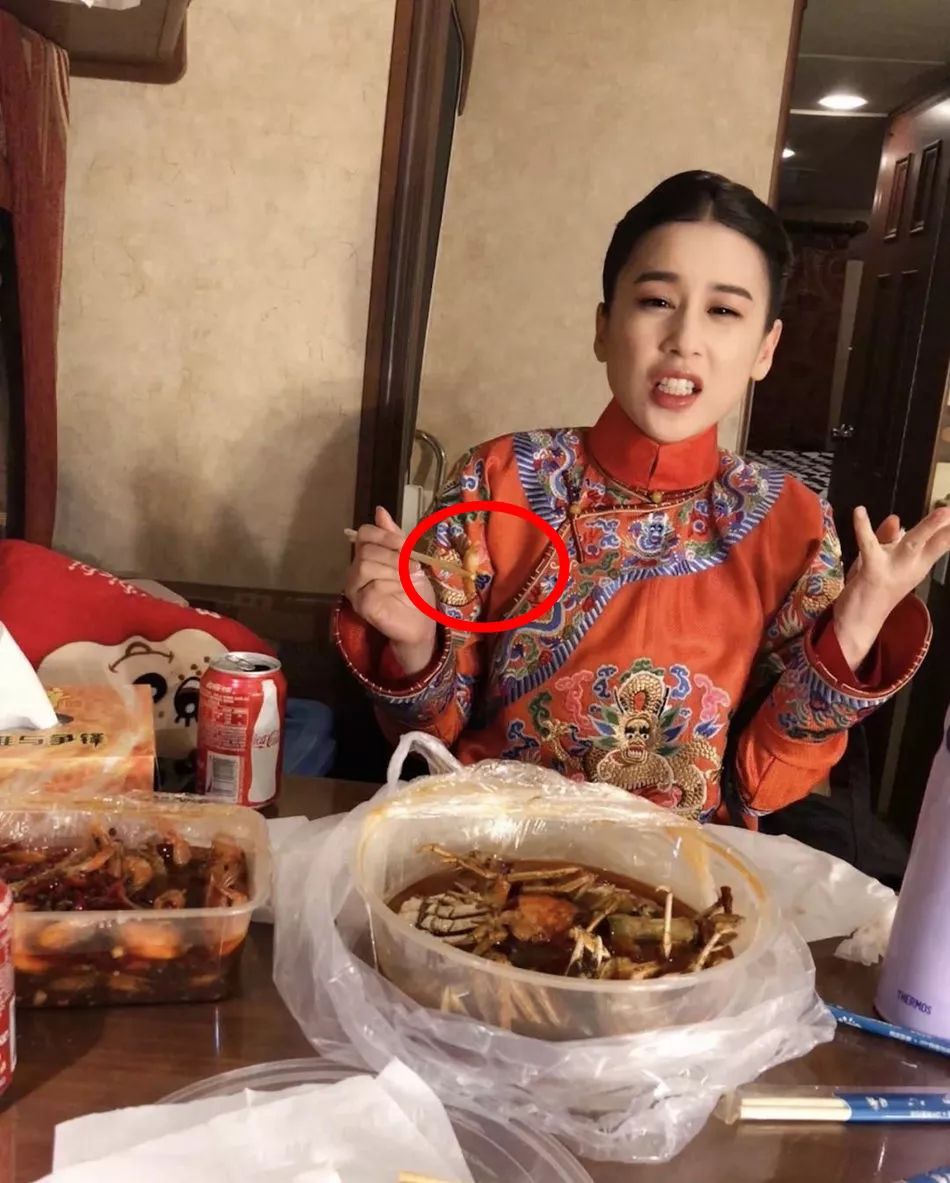 只是有一个细节,让人很疑惑。一开始摆拍的时候,黄圣依夹的明明是香辣蟹,但是到真正吃的时候,她筷子上夹的却变成了基围虾的虾尾。香辣蟹表示很失望!