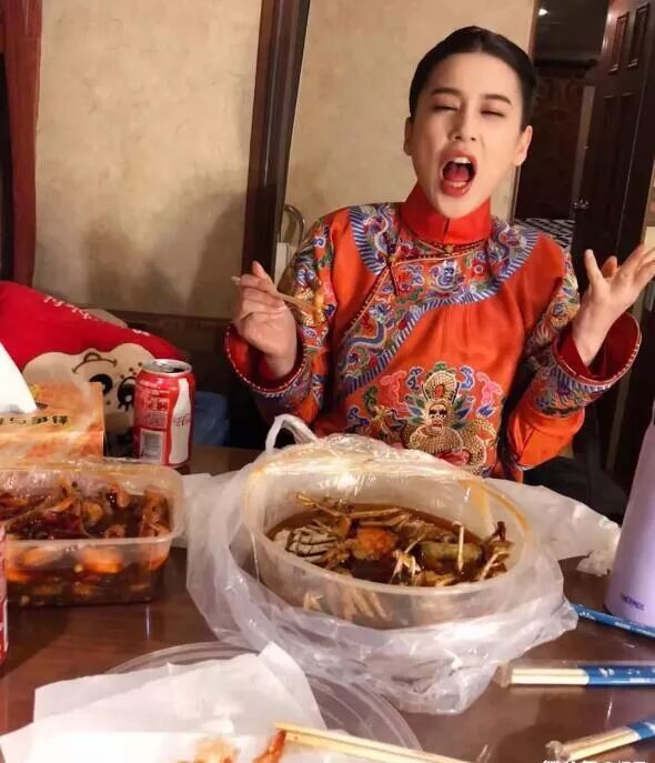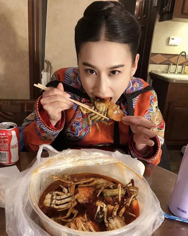 黄圣依目前在拍《少帝康熙》,所以大部分时间都呆在横店剧组。老公杨子不但贴心跑去探班,点了一桌香辣蟹犒劳她,还守在旁边拍下了她大快朵颐的样子。