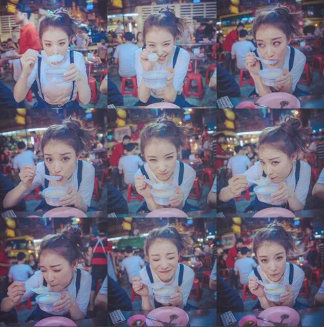 黄圣依这种吃东西摆拍图在女明星里也很常见了。倪妮吃个甜品都要发九宫格,各种吃得很投入很享受的表情,然鹅碗里的东西一点都没少。