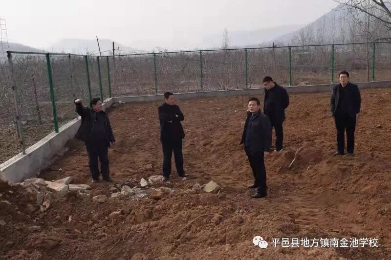 2月20日下午,地方镇天宝学区校长周广胜与东野长刚、刘波、周光峰三位副校长一行来到南金池小学实地查看操场建设施工情况。