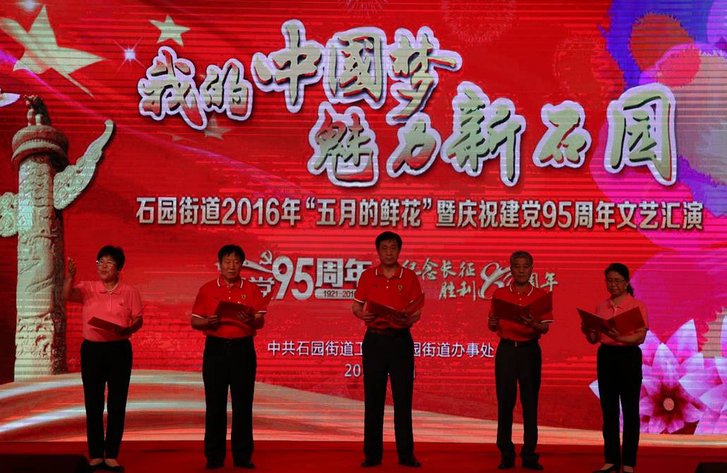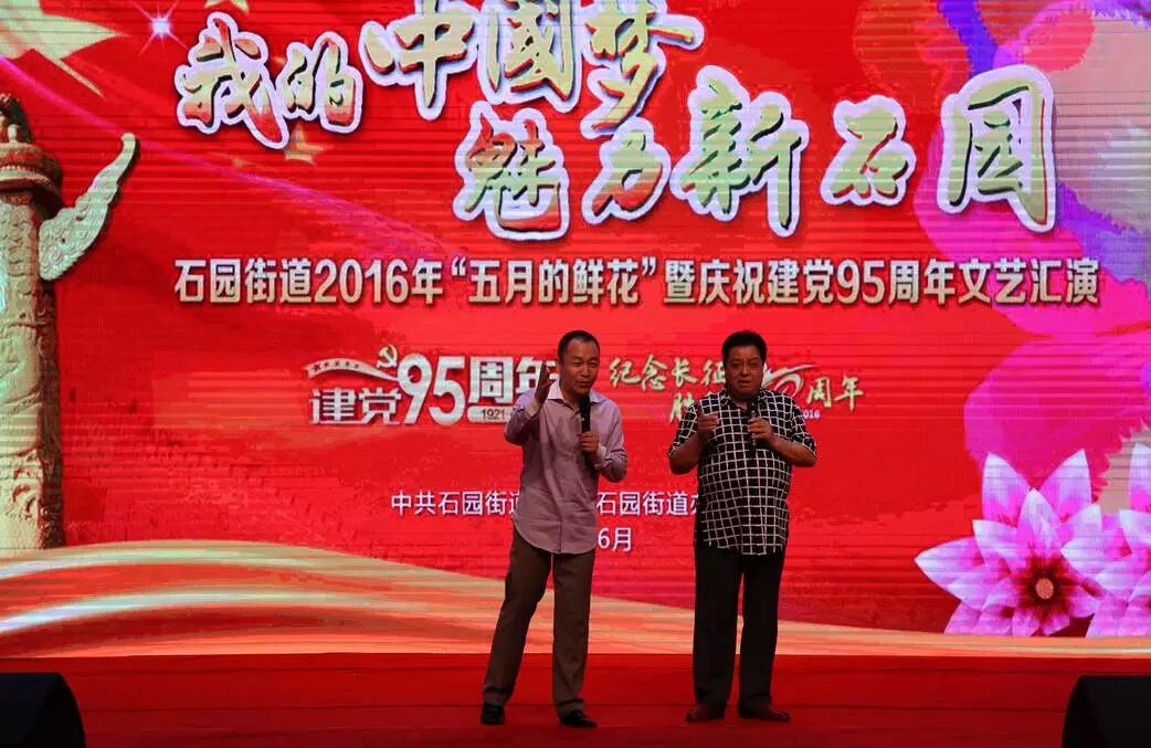 在石园街道举办的“我的中国梦,魅力新石园”五月的鲜花暨庆祝建党95周年文艺汇演汇演现场,除了李金斗的相声表演,看着街居干部表演的藏族舞《洗衣歌》、石园东区的快板《说说社区好党员》、五里仓二社区的诗朗诵《党啊!亲爱的妈妈》等自编自演节目,观众们也连连拍手叫好。