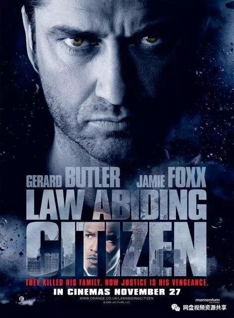 电影《守法公民》是由杰米·福克斯,杰拉德·巴特勒为主演,F·加里·格雷执导的犯罪片。影片的主人公曾是一名治安警员(杰拉德·巴特勒饰),他认为由于有黑幕的交易,使得杀害他的妻子和女儿的其中一名谋杀者将被释放,所以他准备策划一次复仇,惩治那些谋杀者和幕后审判交易人;而负责这起案件的地方法院检察官(杰米·福克斯饰)也卷入这次复仇阴谋的漩涡之中,他察觉秘密复仇的计划后,试图捍卫法律体制。