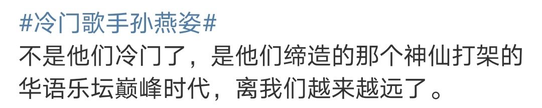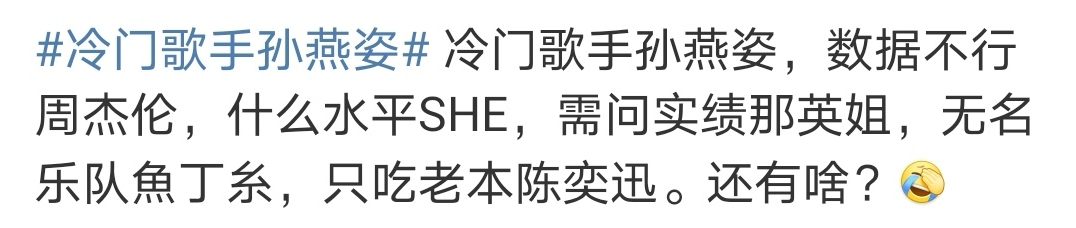 孙燕姿被叫“冷门歌手”,90后又心碎了 Vista看天下 港台女星 2021-05-05 20:14:24 1322 创作不易,用心坚持,欢迎请BaGua喝几杯爱心咖啡!打赏并支持本文 打赏并删除本文 21世纪最令人费解的七言绝句,继全家最丑刘亦菲和相貌平平古天乐之后,又多了一个新面孔——冷门歌手孙燕姿。以后没达到孙燕姿的唱功水平和获奖实绩的,连冷门都混不上了,大概只能说是到圈内一游了。我第一次知道原来人傻钱多是真的,那么多人盼着冷门歌手开演唱会发新歌,迫不及待想送钱。事情的起因是一名14岁的初中生在游戏论坛里发了个贴,用一种发现新大陆的语气说自己发现了一位宝藏的冷门歌手。看了这贴,我大胆预测了一下可能存在的反馈——“我去听歌软件搜了一下,觉得孙燕姿唱得的确不错,可以送去选秀当个团里的主唱,有机会被更多人看到。”“可惜已经结婚生子了,爱豆圈怕是混不成了,只能在边缘歌手行当里打转了。”娱乐圈所有行当的门槛都在降,只有冷门歌手的含金量飞升。80后、90后们看到孙燕姿的名字跟冷门这俩字绑在一起,拳头都硬了。红的时间,可以绕05后小朋友的年纪1.5圈。没想到落了个“感觉在国内不是很多人听过她的歌”的评价。诸神混战的黄金时代一去不复返之后又被鞭尸了。玩“排着队拿着爱的号码牌”这个梗的人,很可能不知道出处;拿“爱是一道光如此美妙”来自嘲的人,听到原曲后可能会惊呼“原来是一首歌里的”。孙燕姿人冷门歌也无人知晓,“歌红人不红”这个标签都算抬咖了,“梗红人不红”才是恰当的定位。虽然这个帖子很有钓鱼嫌疑,但是我觉得这样想的14岁孩子可能真的存在,甚至还不少。毕竟“我即世界”是每个人生下来就自动具备的无敌逻辑。“我的感受”堪比衡量万事万物的标尺和一槌定音的棒槌。KTV这滴时代的眼泪已经在眼眶里打转了,华语乐坛的中流砥柱们纷纷面临“晚节不保”的离谱局面。“冷门歌手”一石激起千层浪,孙燕姿出来回应,顺带着预告了一下新歌。如果说孙燕姿的这份新晋荣誉“冷门歌手”为粉丝换回了新作品筹备中的福利,那周杰伦歌迷迎来的是一场谁也想不到的“夕阳红团建”。之前豆瓣上一位网友对周杰伦的国民度和粉丝体量一无所知,疑惑演唱会为什么总是一秒售罄,把无知者无畏诠释得明明白白。结果上了年纪的周杰伦粉丝不鸣则已一鸣冲天。工作之余从零开始学习饭圈数据打投知识,几天之内把周杰伦超话送上榜单首位。这场battle除了证明周杰伦依旧有强大的粉丝号召力外,其实没什么意义。只不过是不同年龄圈层不同追星群体间的一次临时起意的较量。要我说,也别那么上纲上线,喜欢什么明星或是什么剧集,都有深深的时代印记。紧抓着00后、05后嘲他们坐井观天多没意思。聪明的人已经抓住机会把骂战变成“老年人”的唠嗑聚集地了。 搬运原贴的大V评论区出现了一大批“冷门”歌手和组合的名字。包括但不限于出道很久歌也好听就是不火的陈奕迅、模仿苏打绿主唱唱腔和风格的新人歌手吴青峰、半年不开张开张吃半年的十八线乐团may day。多亏了跳伞的时候脑门失守那条视频,陈奕迅小小地出圈了一次。问了一下下小众歌手爱好者朋友,才知道人家主业是医生,爱好是烫头。怪不得常年不营业,神隐是常规操作。还有一位连微博都没有的中年歌手周杰伦,靠着一首《Mojito》小火了一把。考古物料的时候发现他早年还给冲泡奶茶当过广告模特,穿着男人的衣柜骑着帅哥标配电动车。营业的时候拽拽的,身材管理也不做,就惦记着自己的豪车跟奶茶。或许大家还记得跟春晚小品常青树郭冬临撞脸的那位新加坡歌手吗?他叫林俊杰,这名字倒是耳熟,应该是在什么不知名金曲排行榜上见过。听说Live比录音室版本好听,把粉丝惯出了只听现场版的挑剔习惯。可惜他事业心好像不重,沉迷打游戏,也不在综艺里露脸,就喜欢跟周杰伦抱团喝奶茶。不懂就问,左下角那两位能对号入座吗?两个人一起正事不干,副业处处开花。害怕演唱会的票卖不出去冷场尴尬,每次巡演就区区几个场次。全天底下最希望把粉丝的钱包捂紧的,他们一定能获得最高提名。相比起来,王菲算是略有知名度的了,毕竟是窦靖童的妈妈。十年前上过春晚,唱了一首《传奇》,从此拥有了一首被不少人误认的代表作。青春疼痛匠心巨制《匆匆那年》上映的时候,靠着片尾曲刷了波存在感。这位三十岁就盘算着退休的业余女歌手,近几年来越发有将“糊”进行到底的意思。社交账号不更新,专辑演唱会更是遥遥无期,也就以一年一首的频率在电影主题曲里打个酱油。但是清闲的半隐退生活都是她王菲自己的事情,跟王靖雯没什么关系。大家也基本上不介意王菲在退圈边缘来回试探,王靖雯打下的江山足够天天单曲循环了。田馥甄处境稍微好点,虽然成名曲《小幸运》也只是给电影做陪衬,但好歹不是翻唱,货真价实是自己的歌。再往前扒拉一下,惊喜发现田馥甄竟然就是SHE里的Hebe。听听SHE的歌,才知道中国女团原来不只有选秀出道团一种类型。还有刚出道的张韶涵,运气极佳,初来乍到就蹭到了《斗罗大陆》的热度,一首主题曲《破茧》直接飞升实力歌手。有人对捧红张韶涵的作品存疑,更偏爱新歌《欧若拉》。《隐形的翅膀》看来是真隐形了,《淋雨一直走》直接走出了听众视野。梁静茹给的勇气也派上用场了,不