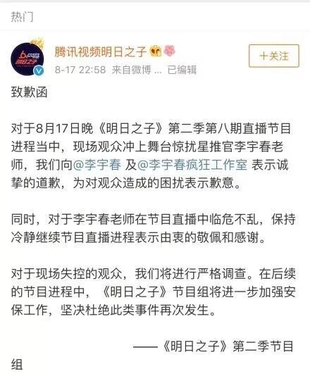 节目组迅速发表了致歉函 ↓ ↓ ↓