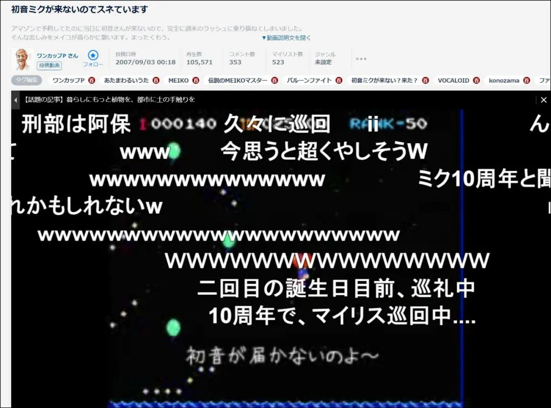 初音刚火的时候,有个叫「ワンカップP」的人投稿了一段大概意思是「我正在生闷气,因为初音未来不了了!」的二创视频,火了。