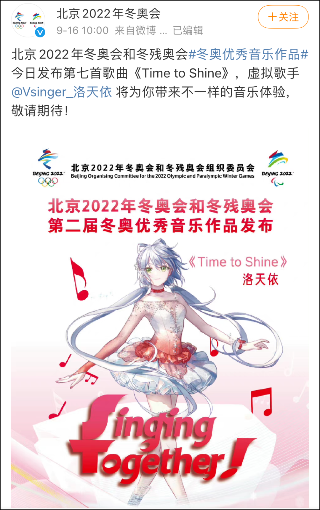就像在国内,中文虚拟歌姬的脚步从来没有停下过。之前BB姬还看到2022年北京冬奥会还会有咱们的虚拟歌手——洛天依登场。