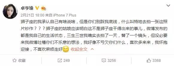 突然登上了热搜,网友们也纷纷质疑是卓姑娘在炒作蹭热度,认为仅仅是替了一个背影镜头,而且替身一行是基本不露面的。而她本人则在微博反击回应说自己是耿直的狮子座,有什么说什么,不会特意炒作。