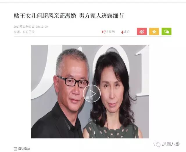 香港媒体又曝出何超琼的亲妹妹何超凤已离婚。