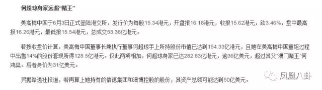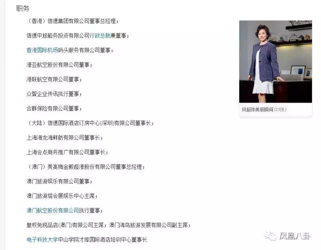 光是职务就有这么一长串,更别提公职和她的慈善事业,2015年1月,何超琼以50亿美元身价成为香港女首富