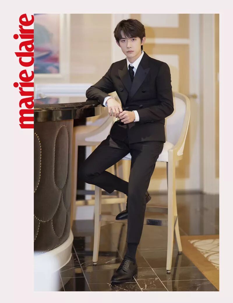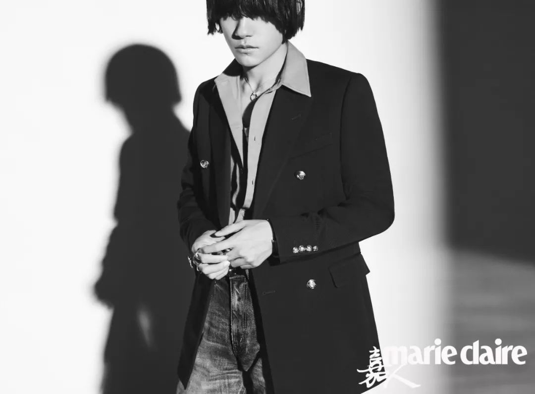 黑色西装外套、卡其色衬衫