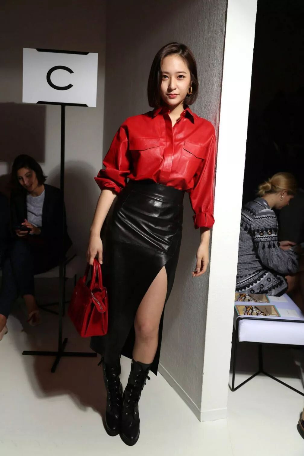 黑色衬衫,搭配黑色皮裙,穿出高级感,一身名牌的郑秀晶,着实有些魅力,让人们难以抗拒。