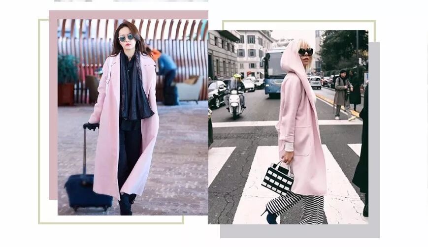 如果你不喜欢粉色,原因是不是认为粉色显得太嫩了?那可以搭配大面积的黑色内搭,撞色效果十分抢眼,就像神仙姐姐一样,走路带风。