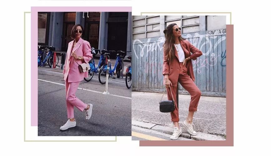 粉色西服除了搭配高跟鞋,还可以搭配运动鞋。如果第二天要外出办事的白领,就可以西服搭配运动鞋,放心,依然美美的。