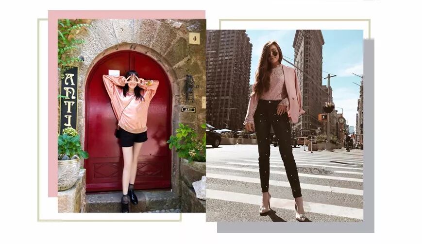 当然,如果觉得一大片黑色太枯燥,那就尝试一条黑色裤子,不用担心上衣的款式,也不用再去细分粉色,上粉下黑就是这么百搭。