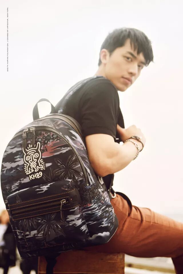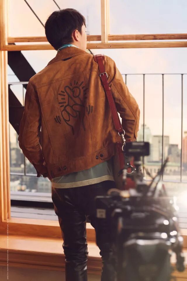 许魏洲身穿柔软的麂皮夹克,内搭夏威夷印花衬衫。同时,搭配上本季主打Dylan手袋,灵感源于20世纪70年代的乘机旅行手袋,由Coach x Keith Haring与Coach经典标志性“C”字母拼缀而成。手袋的轮廓选用经过打磨的棒球手套鞣制皮革制成, Keith Haring经典涂鸦印花纯手工刺绣在印有Coach经典标志性字母图标的手袋上。