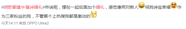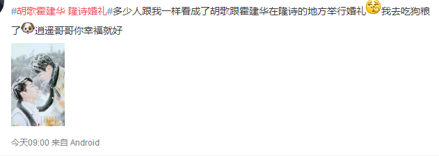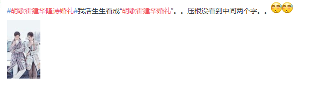 网友们也懵逼了,比如没有看到中间两个字,直接看成胡歌霍建华婚礼的