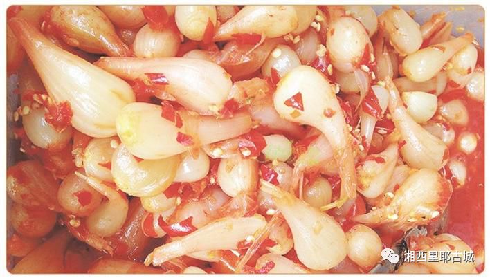 前不久,有朋自远方来,我便在龙山县里耶古城的一家酒店招待他们。席间,热情的酒店老板给我们端上了一盘自制的酸藠头,红色辣椒酱裹着洁白的藠头,“色、香、味、形”极佳,非常勾引人的食欲,酒过三巡的朋友一尝,其味酸酸甜甜,微辣爽脆,又极解酒气。几个朋友一连吃了三盘,赞不绝口,余味未尽!