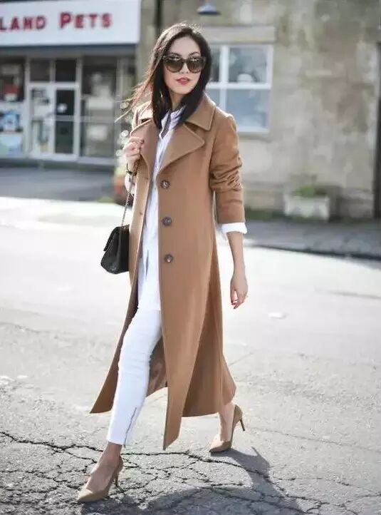 中长款保暖性好,线条笔挺,实用又时髦。内搭高领毛衣+牛仔裤简洁好看。