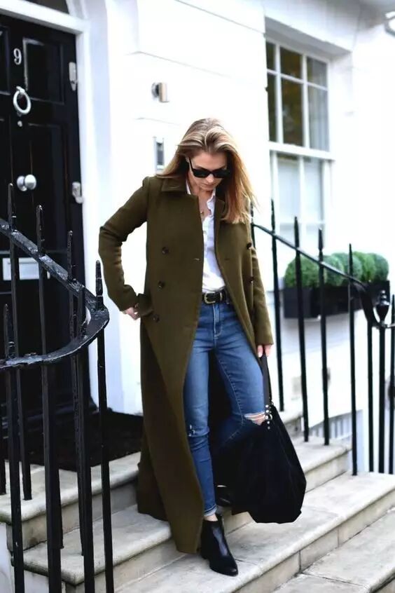 超长款适合高子子女生凹造型,帅气有气场。橄榄绿的大衣独特又百搭。