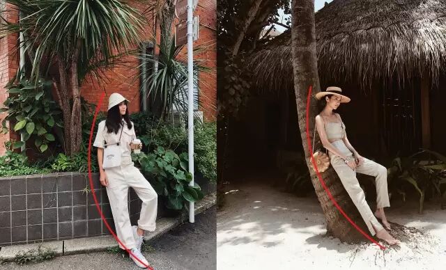 除了在穿搭上做功课,拍照的时候怎么才能让照片看起来一米八呢?就是一个字:靠!靠着之后曲线要比直线看起来更长,整个人就显得更高▼