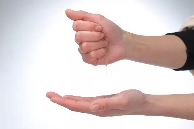 ▲女王把面膜的精华滴在手上,然后稍微揉擦后,左边的安科丽吸收特别快,而且清爽不粘腻,但右边就特别难吸收,全在肌肤表面。