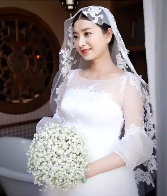 一些很敢穿的小S,在她的婚礼上选择了经典复古款双肩纱。