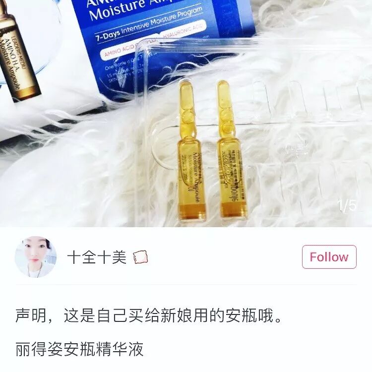 研究了成分才知道,原来丽得姿安瓶精华里含有大分子、小分子两种形式的玻尿酸成分,可以强效给肌肤补水并且锁水。