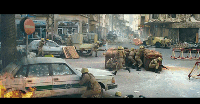 《红海行动》有12处大场面,坦克呼啸而过,子弹乱飞,爆破声四起,演员必须把规定的动作准确地做完。
