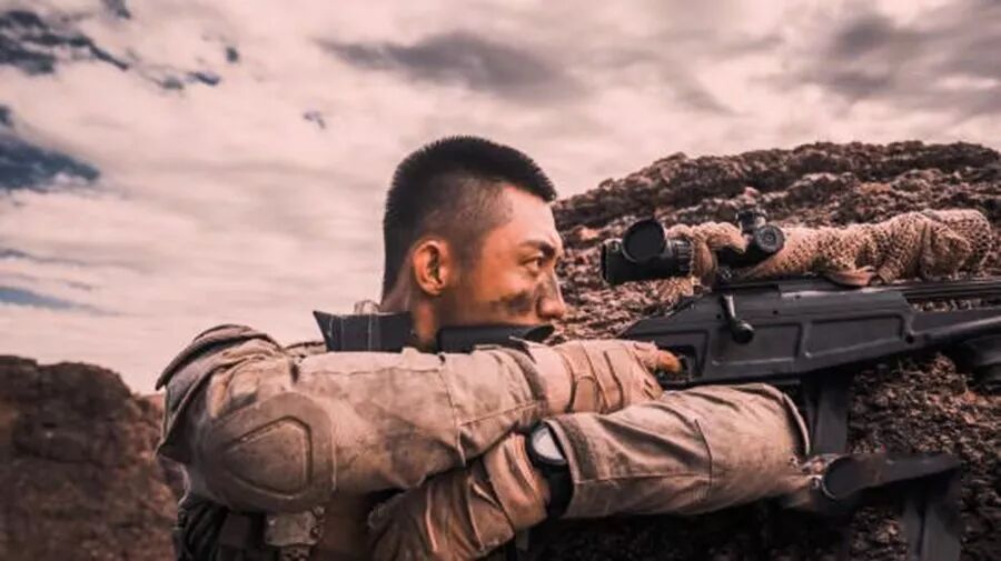 ▵《红海行动》剧照,黄景瑜饰演“蛟龙突击队”中的狙击手
