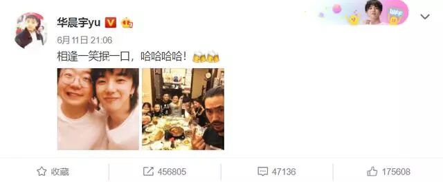 先是华晨宇发微博称:相逢一笑抿一口,哈哈哈哈!