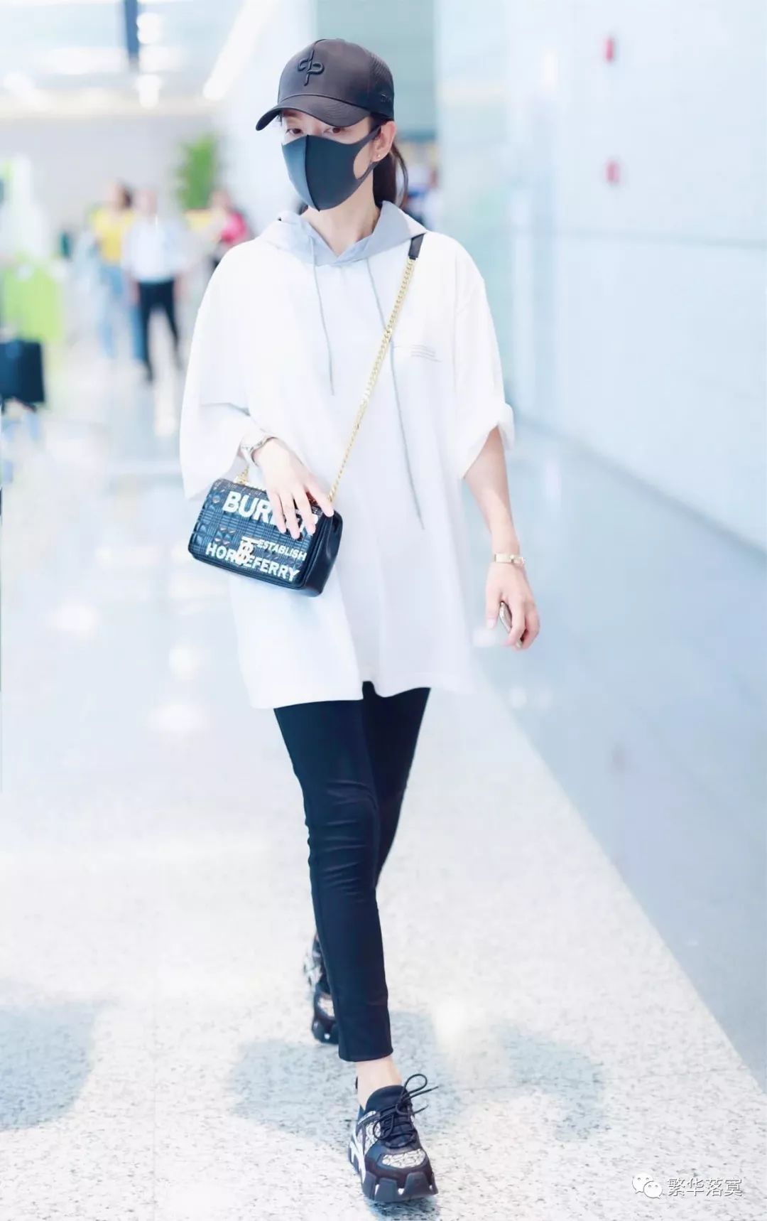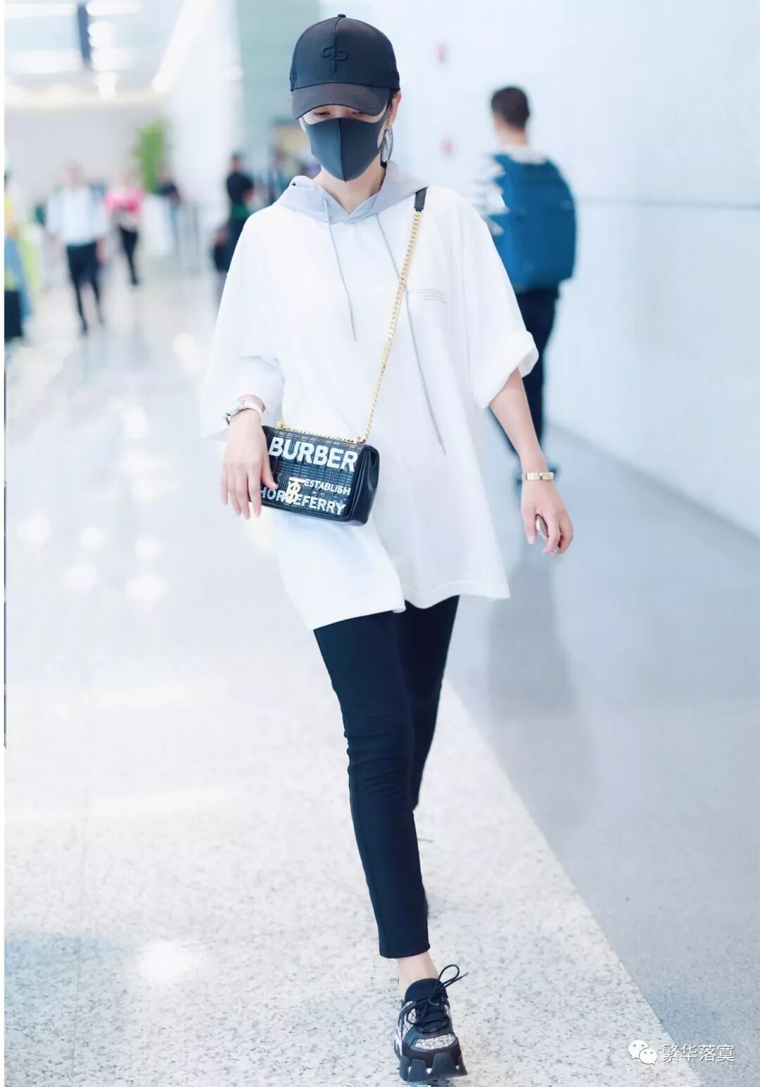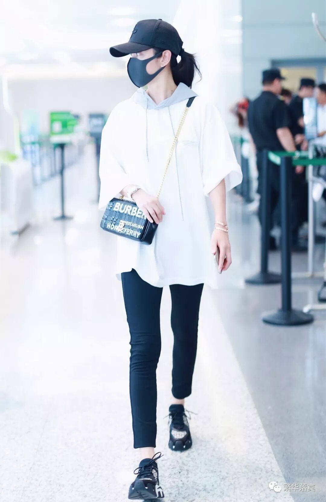 先整體看一下李冰冰這回的機場look,與紅毯上那個霸氣側漏的她纷歧樣,一件簡單的白色衛衣短袖搭配上經典的黑色小腳褲一下子將她活潑元氣的一面展現給巨匠,上半身的寬松花式將雙腿襯托得又細又直,整個人完全就是個清純派妹妹!