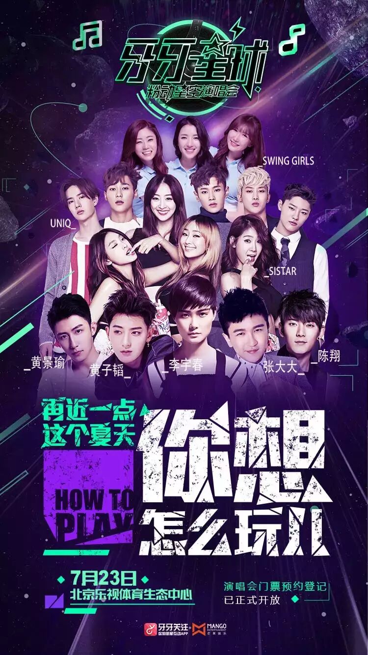 发布会现场请来人气小鲜肉黄景瑜坐镇,并曝光了首场北京站演唱会的强大嘉宾阵容,除了黄景瑜之外,还有内地当红偶像李宇春、黄子韬、陈翔以及韩国人气组合SISTAR等。“表情包男神”黄子韬加盟海报一出,网友们似乎抓到了新奇点,纷纷发布疑问:为何不用表情包做海报。
