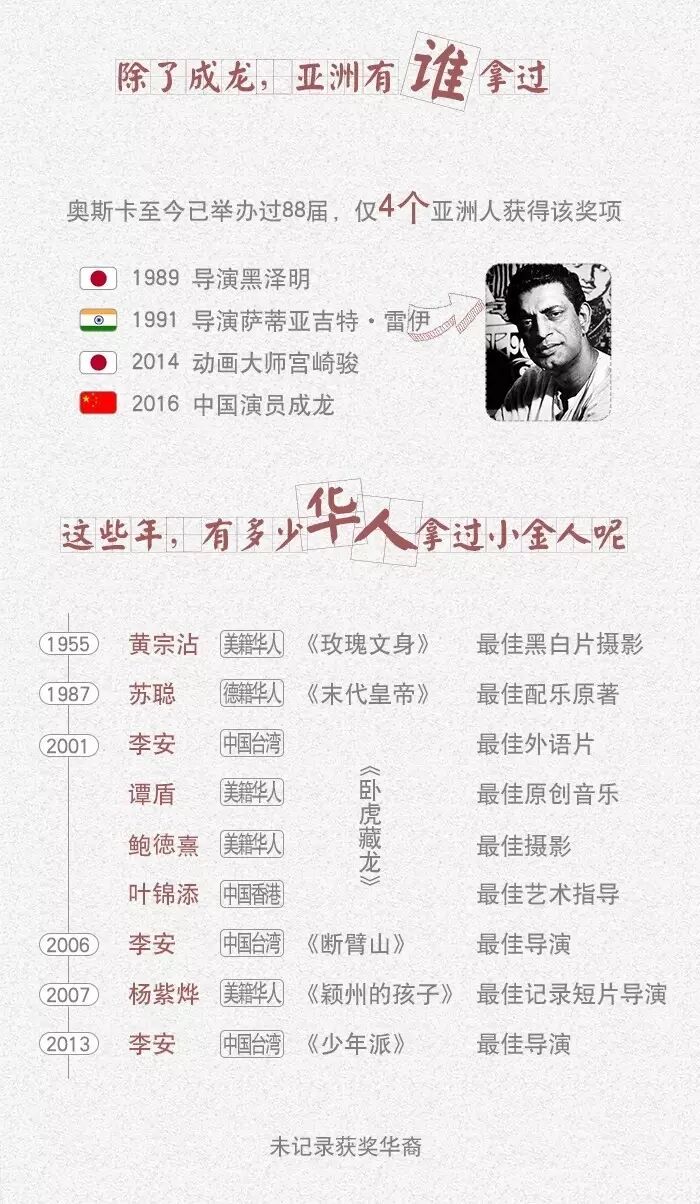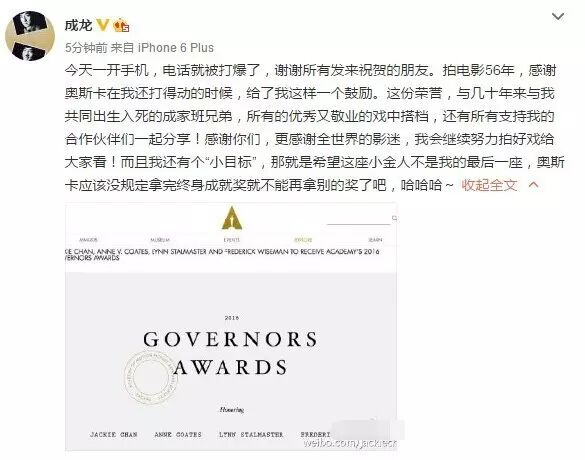 成龙获奥斯卡终身成就荣誉奖 系首位获奖华人