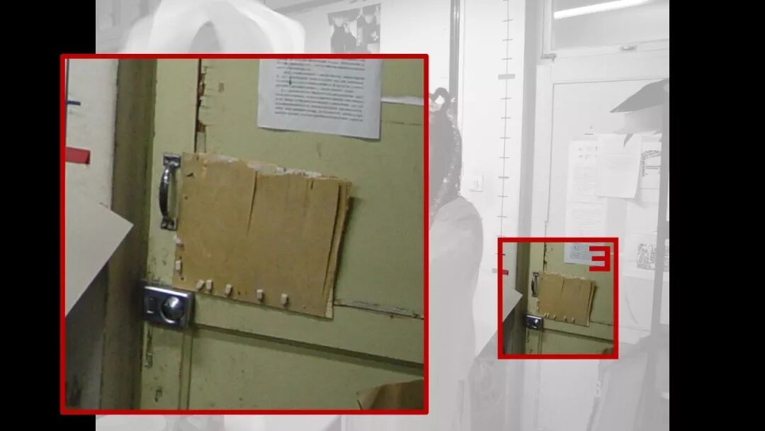第三个细节是门锁上的这块木板。当年是一个班用一个教室,但是钥匙只有少数几个人有,开门很不方便,所以这个角落就被扣开,以便于把手伸进来开锁,为了安全起见,后来就补上了这块木板。